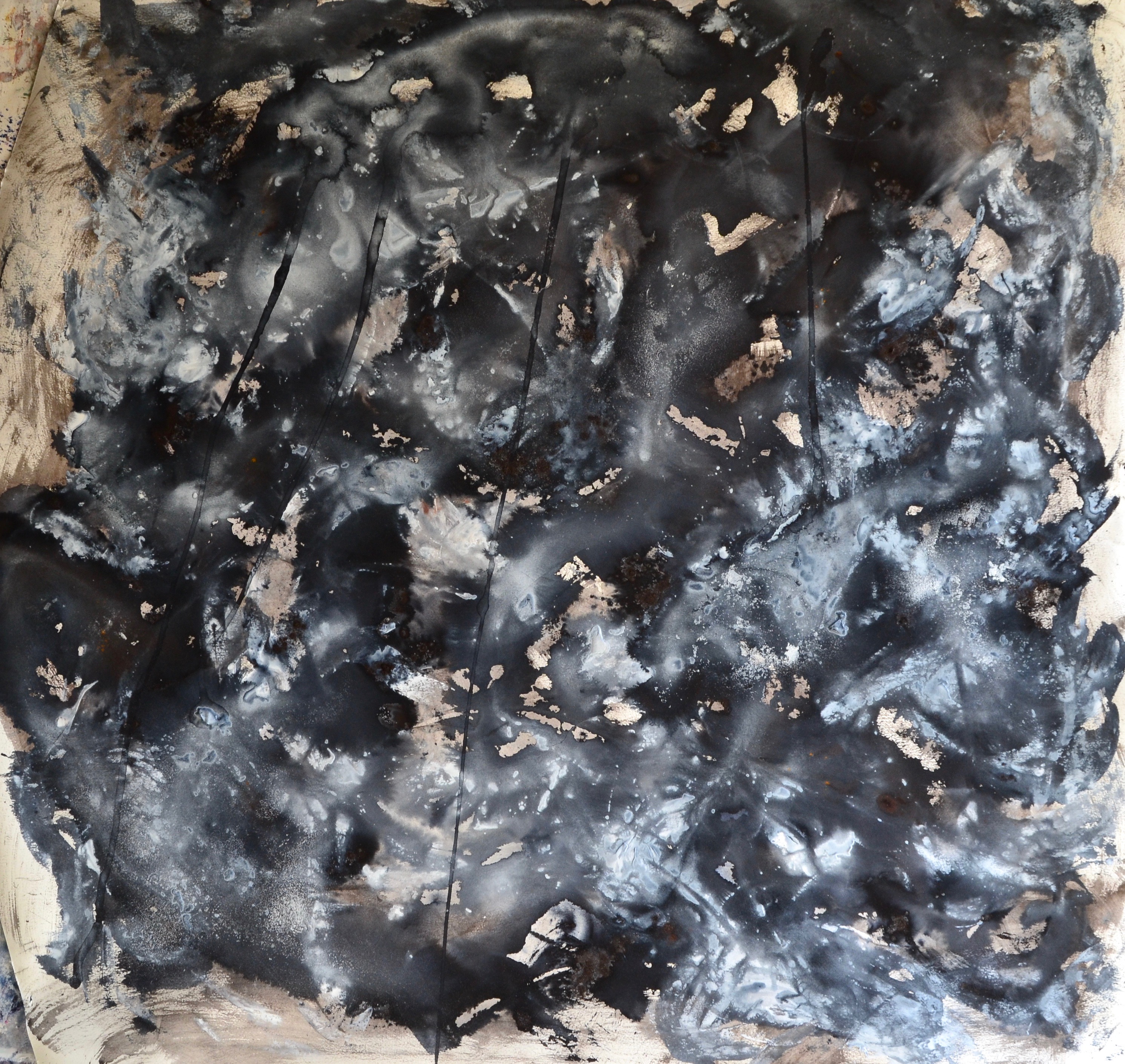 CMop-809 Published April 11, 2019 at 2983 × 2821 in 2019 Next → 30”x22” , Dye, Oil, Acrylic, Ink, Pigment, Latex, Cement, Liver of Sulfur, Fibers and Corrosive Metals on 240 Aquarelle Rag, 2019