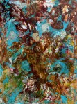 - 42″×62″ , Dye, Oil, Acrylic, Ink, Pigment, Latex, Cement, Liver of Sulfur, Fibers, Charcoal and Corrosive Metals on Canvas, 2021