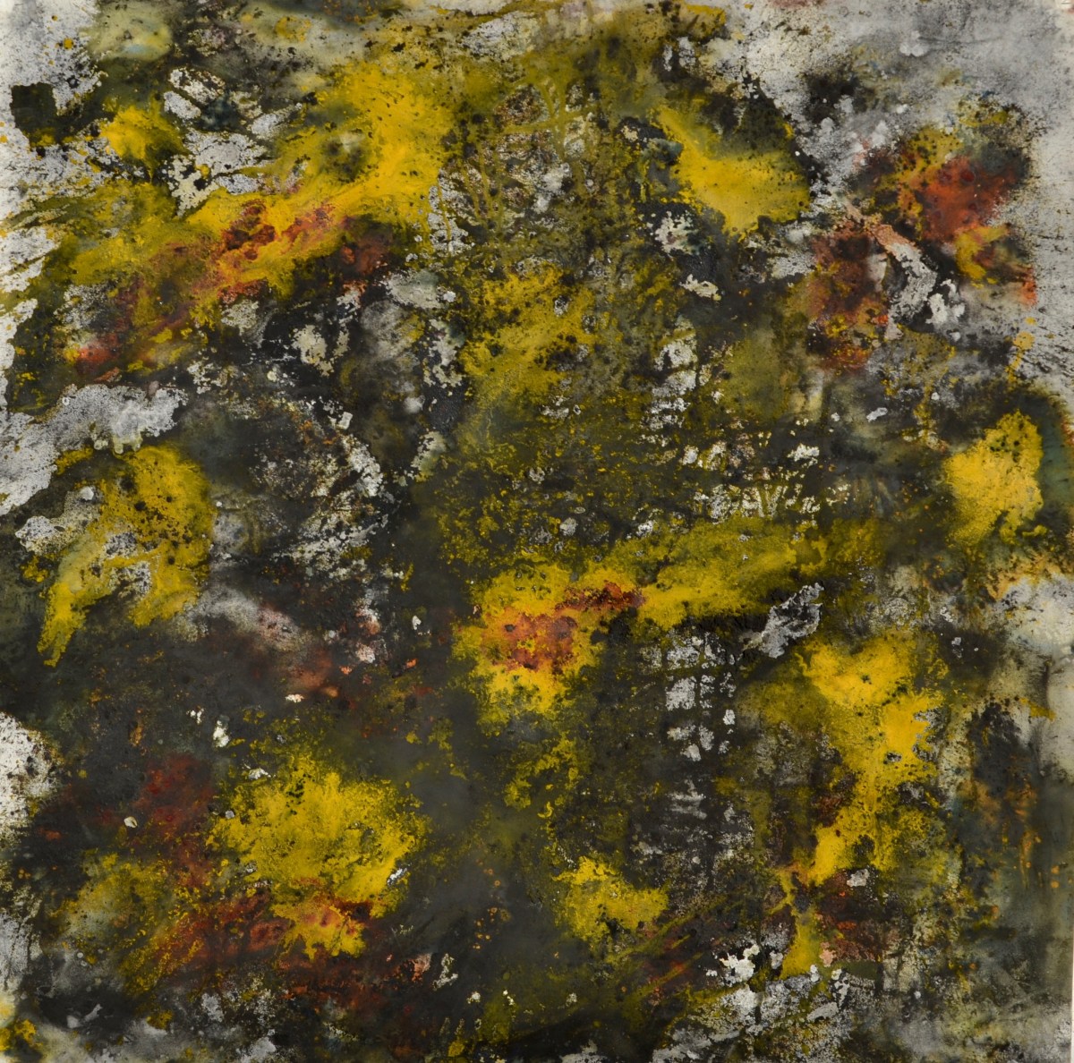 BR0q Published November 11, 2019 at 2735 × 2709 ”50×52” , Dye, Oil, Acrylic, Ink, Pigment, Latex, Cement, Liver of Sulfur, Fibers, Charcoal and Corrosive Metals on Arches Aquarelle Rag 240, 2019