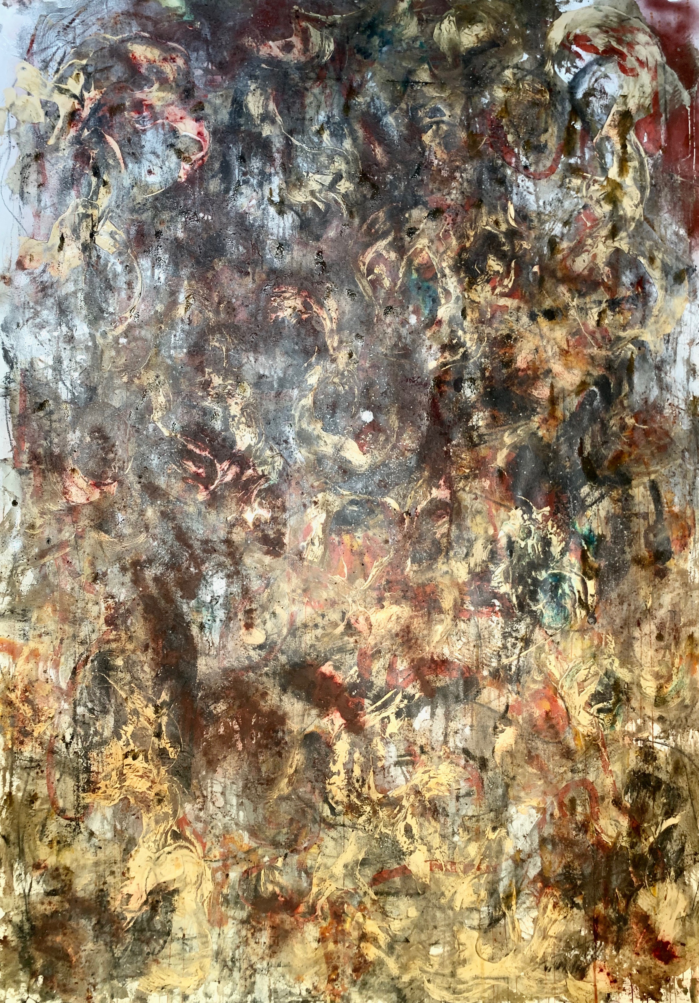 CLHG-008 Published August 9, 2019 at 2424 × 3480 52”x94” , Dye, Oil, Acrylic, Ink, Pigment, Latex, Cement, Liver of Sulfur, Fibers, Charcoal and Corrosive Metals on Arches Aquarelle Rag 240, 2019