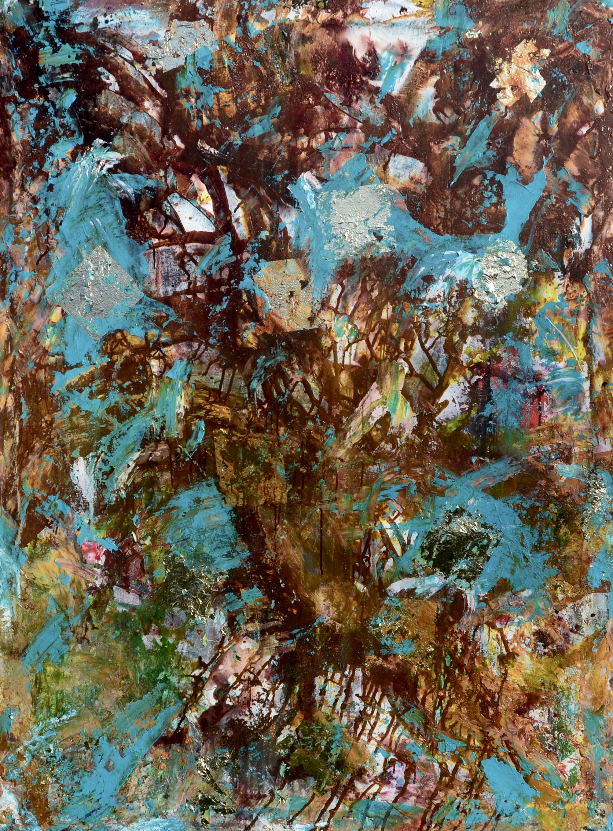 Hseos Published December 5, 2021 at 2006 × 2721 62″×48″ , Dye, Oil, Acrylic, Ink, Pigment, Latex, Cement, Liver of Sulfur, Fibers, Charcoal and Corrosive Metals on Canvas, 2021