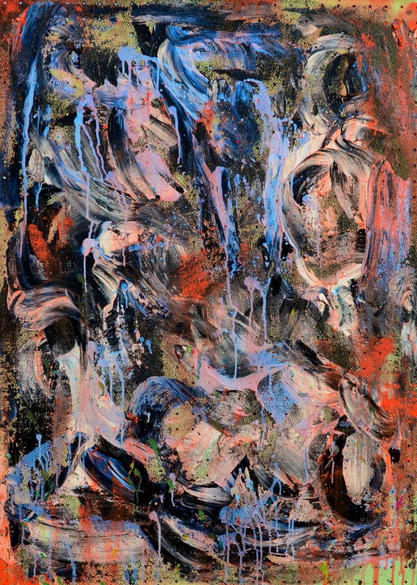Pgbrrd Published December 5, 2021 at 1806 × 2535 36″×30″ , Dye, Acrylic, Ink, Pigment, Latex, Liver of Sulfur and Corrosive Metals on Peg Board, 2021