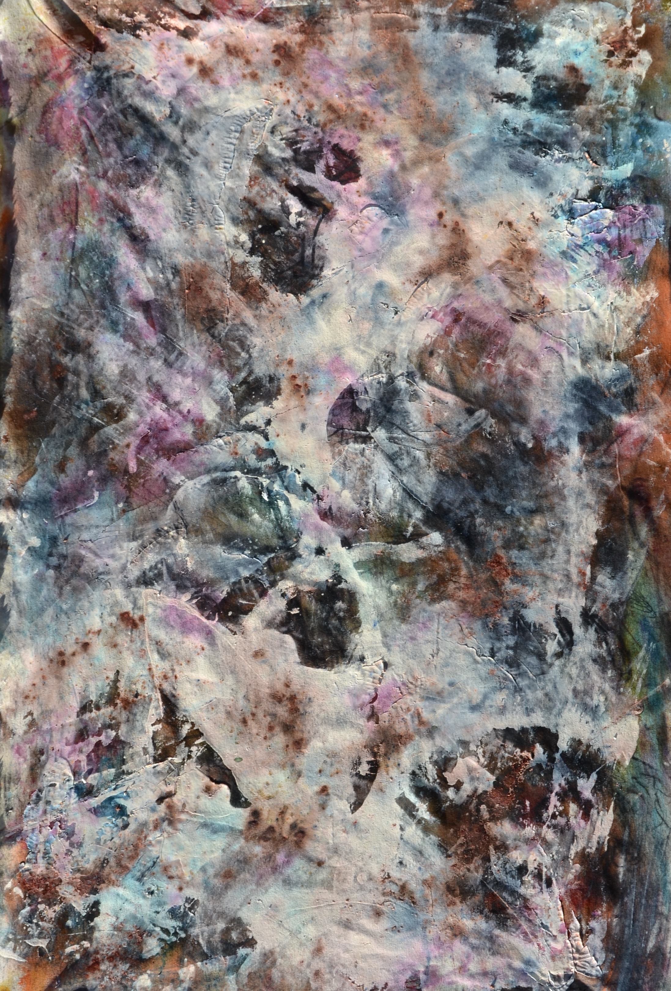 Cohve Published December 5, 2021 at 2194 × 3243 62″×42″ , Dye, Oil, Acrylic, Ink, Pigment, Latex, Cement, Liver of Sulfur, Fibers, Charcoal and Corrosive Metals on Canvas, 2021