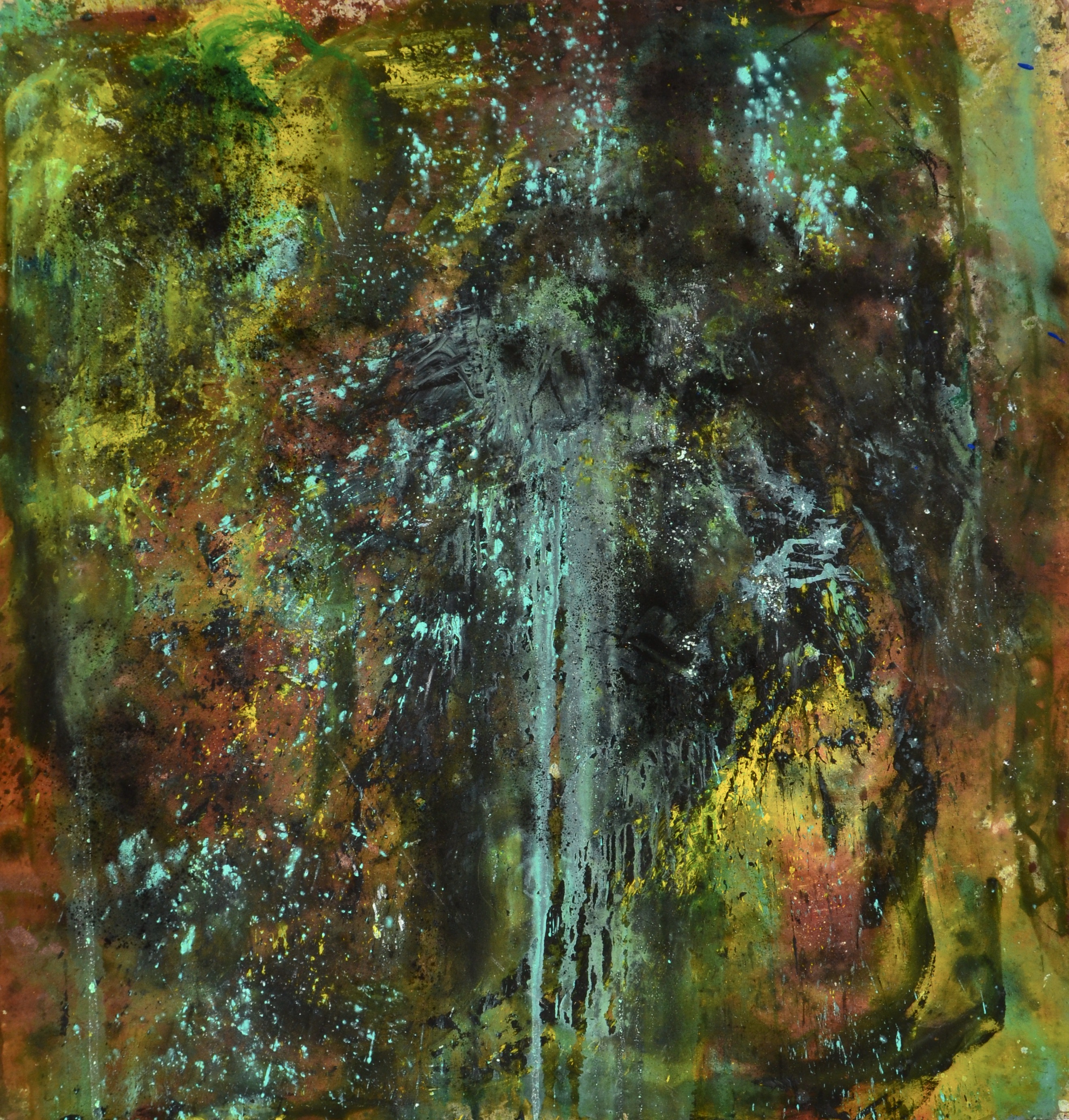 LsPas Published December 5, 2021 at 2640 × 2766 70″×70″ , Dye, Oil, Acrylic, Ink, Pigment, Latex, Cement, Liver of Sulfur, Fibers, Charcoal and Corrosive Metals on Canvas, 2021