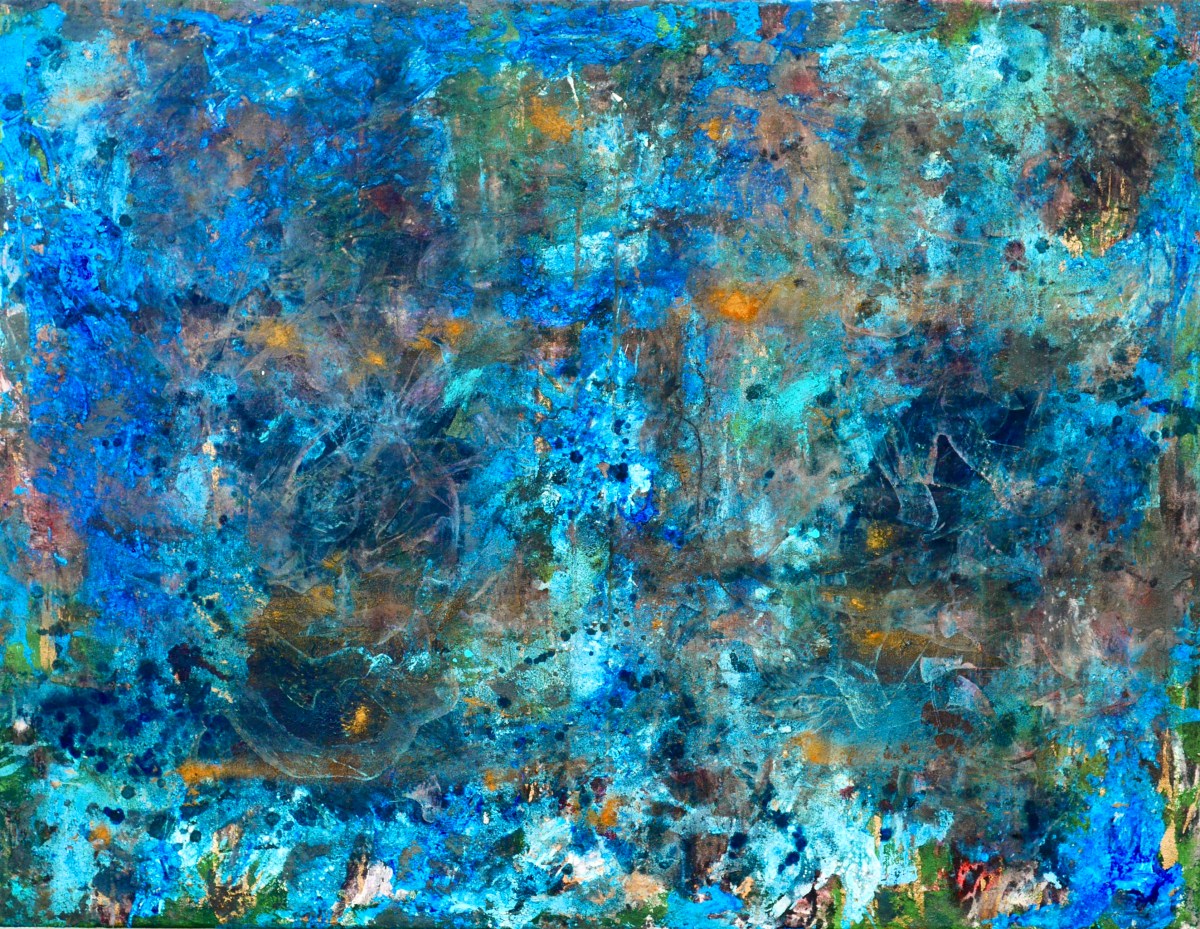 HOUZ-35 Published October 9, 2021 at 3353 × 2598 60”x72” , Dye, Oil, Acrylic, Bleach, Pigment, Latex and corrosive metals on canvas, 2020