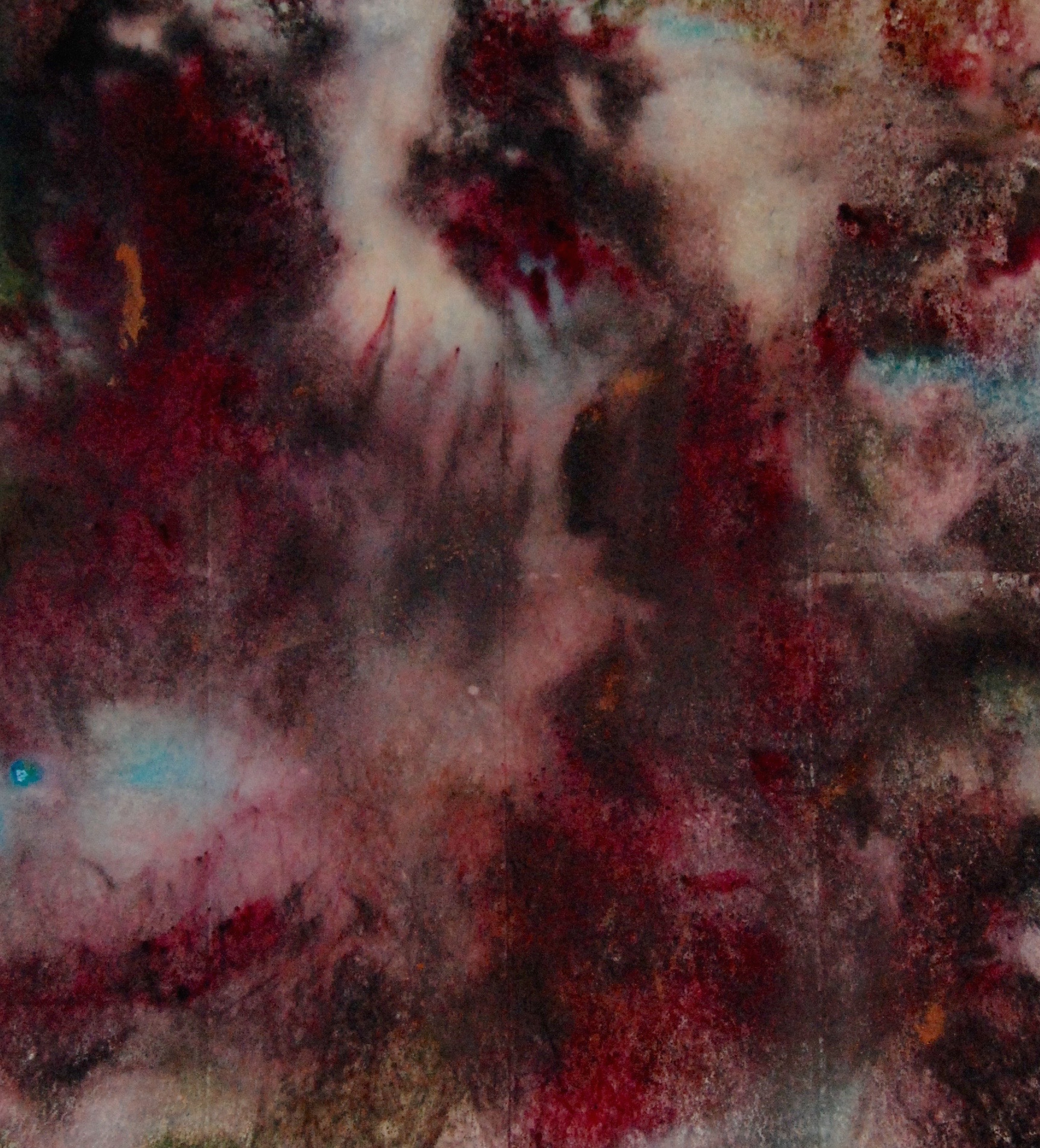Uyp Published September 1, 2015 at 1726 × 1905 in 2015 ← Previous Next → 74”x67” , Dye, Acrylic, Bleach and corrosive metals on canvas, 2015