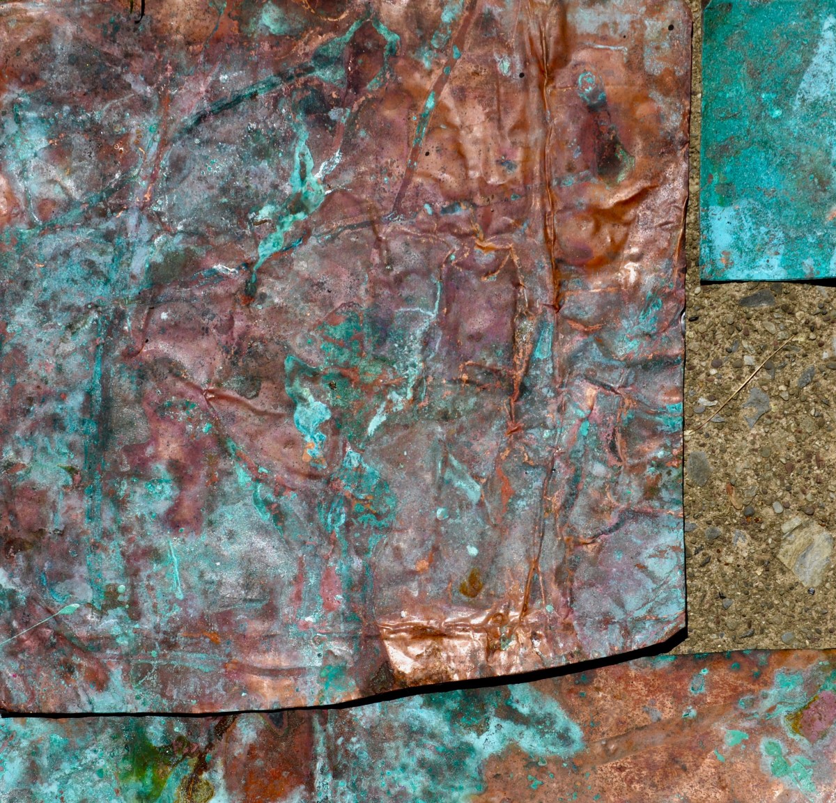 DSC_0380 Published June 14, 2018 at 2773 × 2665 in 2018 ← Previous Next → 24”x 24”, Copper, Cement and Liver of Sulfur, 2018