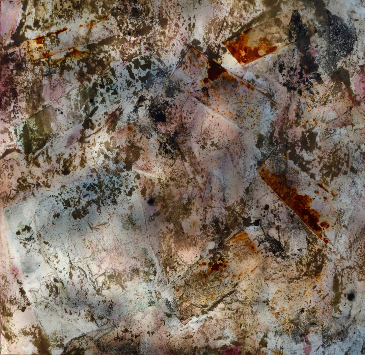 DSC_0495 Published June 27, 2018 at 3025 × 2943 in 2018 ← Previous Next → 50”x50” , Dye, Oil, Acrylic, Ink, Pigment, Latex, Cement, Silver, Liver of Sulfur and Corrosive Metals on Arches Aquarelle Rag 240, 2018