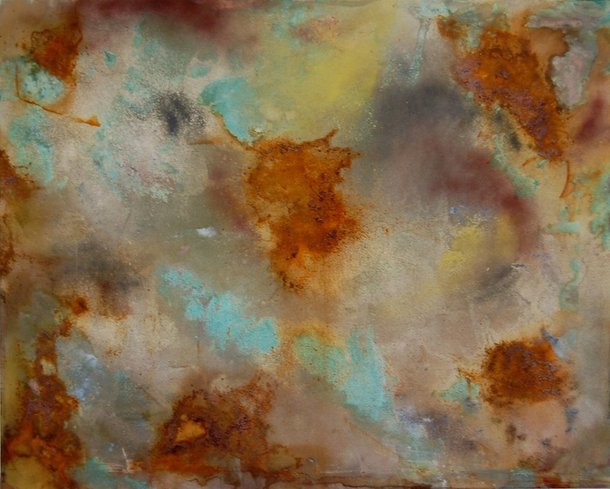 Horologium Published July 19, 2013 at 1280 × 1028 in Archived Work/WIP Images ← Previous Next → 48”x60” , Acrylic and corrosive metals on canvas, 2012