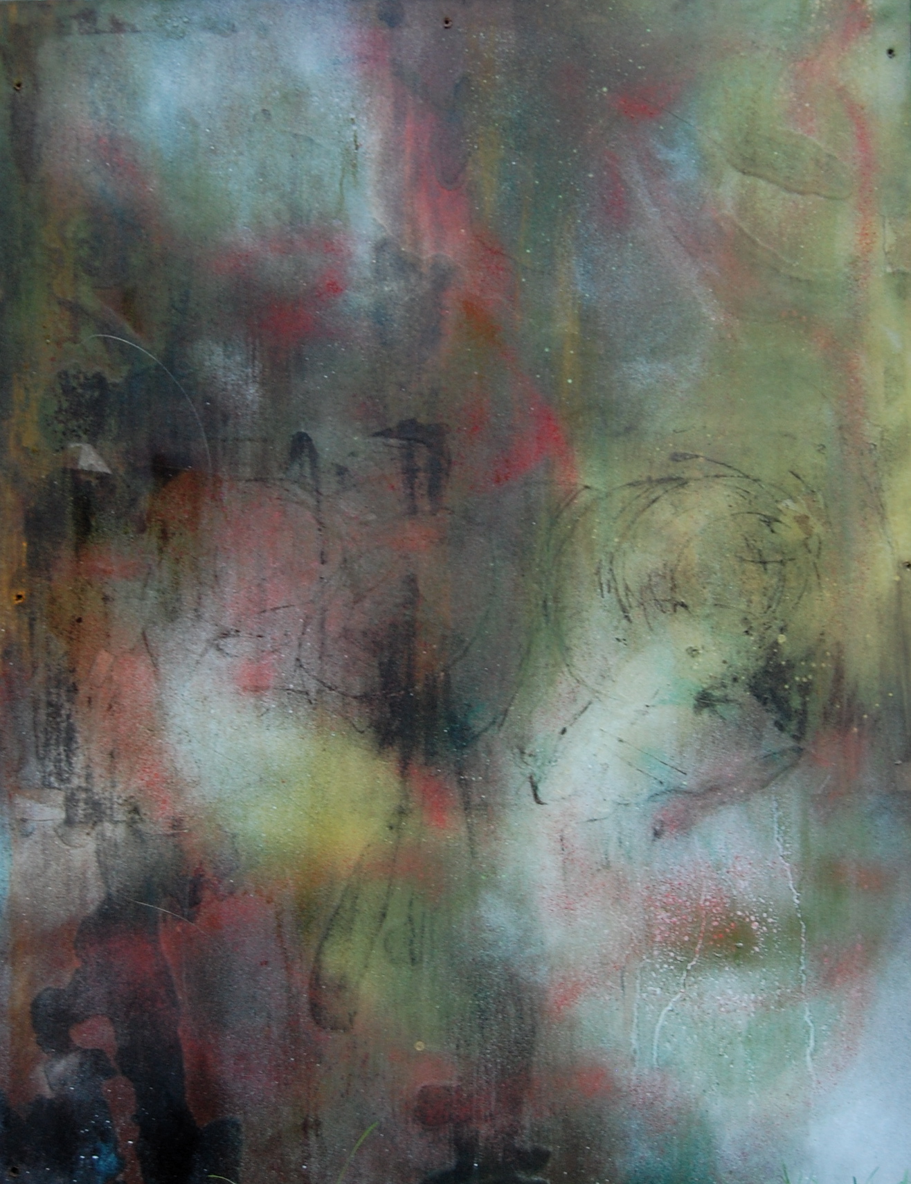 Virgo Published July 19, 2013 at 1316 × 1710 in Archived Work/WIP Images ← Previous Next → 48”x36” , Spray Paint, Acrylic, and corrosive metals on Masonite, 2012